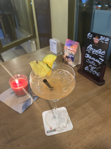Read moreWir haben zwei Cocktails bestellt und mussten ewig lange warten. Zu zweit seine Getränke zu genießen, war uns leider auch nicht vergönnt, da unsere beiden Getränke stark zeitversetzt serviert wurden. So war meine Partnerin schon fast fertig, als ich meines bekam. Das war aber noch nicht alles. Mein Cocktail war wesentlich kleiner als der meiner Freundin. Als ich die Kellnerin darauf aufmerksam machte, meinte sie, dass es auch ein anderer Cocktail sei und nicht jeder gleich groß sei. Zufällig hatte unser Nachbartisch auch zwei "Swimmingpools" bestellt welche aber deutlich größer serviert wurden. Und wie geahnt, wurde mir auch ein großer berechnet. Erst als ich die Kellnerin auf den Nachbartisch aufmerksam machte, wurde mir letztlich ein kleiner Cocktail in Rechnung gestellt. Die Kellnerin sprach leider auch nur Englisch und kein Deutsch. Das war jetzt für uns kein großes Problem, aber sollte vielleicht...
