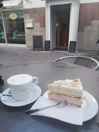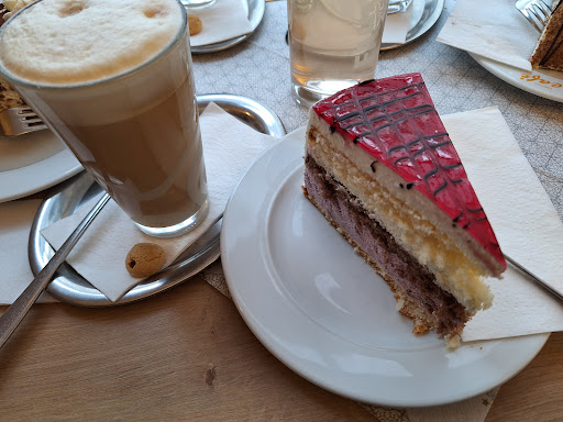Read moreWir waren um die Mittagszeit hier, um vor dem kalten regnerischen Herbstwetter zu entkommen und sich gemütlich bei einem heißen Kakao aufzuwärmen. Nunja beim Betreten des Cafés war ich kurz davor, umzukehren. Das Ambiente des Cafés ist keineswegs gemütlich und lädt nicht unbedingt zum langen Bleiben ein. Dazu, und das hat mich noch mehr gestört, waren alle Gäste ausnahmslos mindestens Ende 40, die meisten sogar noch um einiges älter. Das ist ja an sich nicht schlimm, aber es ist einfach nicht das, was ich von einem Café erwarte und wo ich mich wohlfühlen kann. Die Bestellung kam schnell, die herbe Schokolade war auch sehr lecker. Der Tee war nichts besonderes und die zwei Kugeln Eis für 2,20€ kamen ohne jegliche Deko und haben billig geschmeckt.