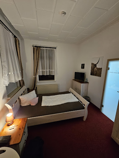 Read moreWe stayed here is October for two nights... it is located in a small community surrounded by farmland outside of Erfurt, but is still only a few minutes from the city center... parking is beside the building... the hosts were very friendly and between her little bit of English and my little bit of German, we communicated just fine... they have a few rooms, but the on we had was an apartment, with a separate foyer, bathroom, kitchen, dining room, living room bedroom and balcony/patio access (it was larger than our daughter's apartment back home)... the lower level is a restaurant, and though is was closed for the holiday (we were there for Unification Day) and we couldn't try the fare, they did serve a great traditional breakfast with more offerings than we could eat... behind the inn is a nice sloping green area leading to a small river, so if you just want a nice walk, there is a great...