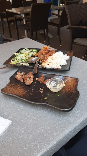 Das Sushi war nicht gut und sah auch nicht anregend aus. Meine Miso Ente entpuppte sich als trockenes, gummiartiges Fleisch mit trockener Haut. Der Reis war zu einer Halbkugel aufgewĂ€rmt, dessen Aussenschivht völlig ausgetrocknet war. Das ganze Ding klebte zusammen und war ohne SoĂe. Einfach nur sandtrockener Reis. Der Gurkensalat entpuppte sich als langgeschnittene Gurken, die fast nach nichts schmeckten. Man merkte eine hauchdĂŒnne Marinade an den Gurken, die man aber kaum herausschmeckte. Der aufliegen Möhrensalat klebte unappetitlich zusammen.