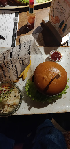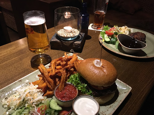Read moreDas Essen ist wirklich klasse und auch die Auswahl an Fleisch, sowie die Fachkundigkeit des Personals sind super. Ich hatte einen Burger mit Sweet Potatoe Fries, dazu gibt es im Menü 2 Dips sowie Coleslaw und einen Beilagensalat. Die Sweet Potatoe Fries kosten 2€ Aufpreis, den ich aber gerne gezahlt habe, denn diese waren wirklich richtig lecker. Der Beilagensalat war nicht so langweilig wie man es sonst evtl. kennt, sondern echt gut gemacht mit Sprossen, Radieschen, Etc. Das Dressing war auch selbst gemacht, wenn auch nicht ganz mein Fall, aber das ist ja Geschmacksache. Das Ambiente war auch super, sehr Texas-mäßig mit Liebe zum Detail eingerichtet - total cool fanden wir auch die Saloon-Schwenktür! Grundsätzlich also schon eine coole Experience, doch jetzt kommt das große ABER: Ganz entgegen unserer Erwartungen, die durch die "American-like" Aufmachung des Restaurants geweckt wurden, empfing man uns weder freundlich noch zuvorkommend und behandelte uns eher von oben herab. Schon als wir ankamen war uns nicht klar, ob wir uns einen Tisch aussuchen oder auf jemanden warten sollten, der uns einen Tisch zuweist, da es keinen Counter und auch kein Schild gab, die darauf hingewiesen hätten. Auch kam zuerst keiner der Kellner, weshalb wir erst einmal unsicher in der Gegend rumstanden, bis mein Freund dann auf unseren künftigen Kellner zuging und nach einem Tisch fragte. Dieser verzog das Gesicht und fragte, ob wir eine Reservierung hätten. Die Art und Weise gab uns das Gefühl, dass er uns schon fast übel nahm, dass wir nicht vorher schon einen Tisch reserviert hatten. Zunächst meinte er dann er könne uns einen Tisch in der Lounge anbieten, wir müssten aber mit 45 min Wartezeit rechnen. Wir meinten daraufhin, dass wir ja gerne erst einmal was trinken könnten. Er fragte dann, ob wir auch was essen wollten und da wir nicht sicher waren, ob wir überhaupt einen Tisch bekommen würden meinten wir "später vielleicht schon dann!". Er fragte daraufhin nur ganz schroff "Ja wie jetzt, ja oder nein?!", woraufhin wir meinten, dass wir durchaus gerne etwas essen wollen würden. Wir wurden dann an unseren Tisch in der Lounge gebracht, immer noch nicht wissend, ob wir hier nun essen bekommen würden oder für das Essen noch einmal den Tisch wechseln müssten. Der Kellner kam auch kurz danach und fragte nicht minder schroff, ob wir etwas trinken wollten. Während unserer Wartezeit bekamen wir eine Szene am Nachbartisch mit, bei der der Gast feststellte, dass in seinen Bratkartoffeln Speck war, er konnte diese dadurch dann aber nicht essen, da er kein Schwein aß. Er sprach dies beim Kellner an und dieser sagte ihm nur ganz trotzig, dass das doch aber in der Karte stehe, dass die Bratkartoffeln mit Speck seien, das machen sie immer so und dass er diese daher nicht so einfach zurück gehen lassen könne und der Gast dafür doppelt bezahlen müsse. Er machte den Gast regelrecht runter und es wirkte so, als wenn er ihm vorwerfen würde die Karte nicht richtig lesen zu können ... Wir schauten auch nach und bei den Bratkartoffeln stand mit keinem Wort, dass diese mit Speck angebraten werden, was die ganze Situation doppelt unfair machte. Eigentlich hätte er die Kartoffeln also besser nicht berechnet. Eine ähnliche Situation hatten wir noch einmal bei der Bestellung eines Bieres für mich, mein Freund meinte noch einmal, welches genau und der Kellner entgegnete nur wieder frech, dass sie eh nur die eine Marke hätten, als wenn mein Freund die Getränkekarte, die auch schon nicht mehr bei uns lag, auswendig können müsse. Alles in allem kann ich nicht verstehen, wie man es sich mit einem eigentlich gut konzeptionierten Restaurant dennoch so sehr selbst versauen kann, indem man die Gäste nicht mal auf Augenhöhe, geschweige denn mit Respekt, sondern sowas von von oben herab behandelt, dass man sich als Gast wünscht, doch lieber zuhause gegessen zu haben. Insbesondere wenn man sich the American Way auf die Fahne schreibt, sollte man die einfache Devise, dass der Kunde König ist,...