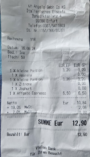 Read moreIch bin ziemlich oft im Eiscafé Un Angelo und bin momentan schockiert über die negativen Reaktionen. Selbstverständlich bin ich der Meinung, dass auch mal was schief laufen kann, allerdings finde ich, dass man sich die Zeit für solch rufschädigende und übertriebene Rezensionen sparen kann. Etwas zu vergessen oder falsch zu verstehen ist menschlich! Ich denke jeder sollte mal versuchen einen Gang zurück zu schalten und nicht aus einer Mücke einen Elefanten zu machen. Natürlich kann man seine Meinung sagen, ist ja auch in Ordnung, aber ich kann mir nicht vorstellen, dass alle Kommentare der Wahrheit entsprechen und es so schlimm im Eiscafé zu geht. Denn wenn es so schlecht schmecken würde und wenn die Bedienungen so schlecht wären, dann würde die Terrasse und auch der Innenbereich nicht immer gefüllt sein, oder ? Viele Dinge werden aus dem Kontext gerissen, viele Dinge werden übertrieben dargestellt und so weiter… aber in die Situation der Mitarbeiter sich rein zu versetzen, ist anscheinend schwierig. Vor allem wenn es voll und stressig ist. Das Personal ist bestimmt nicht dazu da, die Kunden unzufrieden zu machen, ihr Ziel ist immer die Zufriedenheit des Kunden und das sollten sich manche Menschen einfach ins Gedächtnis rufen und lernen eventuell Geduld oder Verständnis für einige Dinge...