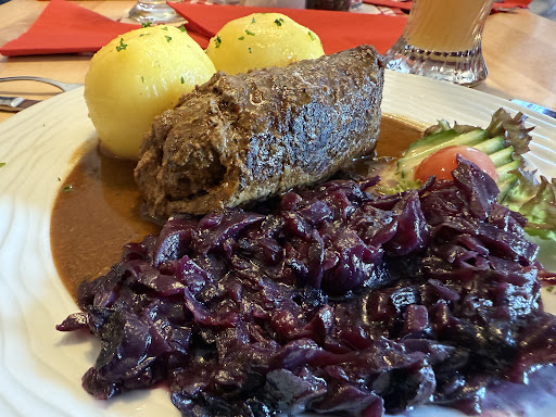 Enttäuschend und nie wieder! Abgesehen von der unnormal kleinen Karte bei der ich fast nichts passendes gefunden hätte, war das Essen überteuert und geschmacklich nicht überzeugend. Ich hatte mich für das Steak Würzfleisch entschieden, das ziemlich trocken war. Andere an unserem Tisch hatten Rinderbäckchen o.Ä. thüringische Küche, womit die meisten unzufrieden waren. Desweiteren ließ auch der Service zu wünschen übrig: Wir hatten zwei Rollstuhlfahrer dabei. Nachdem wir Tisch und Stühle auf Nachfrage umgerückt hatten, um alle an einem gemeinsamen Tisch sitzen zu können, während uns eine Servicekraft von weitem dabei beobachtet hatte, kam sie als wir fertig waren und uns gesetzt hatten zu uns und machte uns patzig darauf aufmerksam, dass das so nicht ginge und wenn das Ordnungsamt käme, wir dann die Strafe bezahlen dürften. Danke für nichts! Generell mangelhafte Serviceleistung, da mehrere Getränke vergessen und Essen falsch aufgenommen oder vertauscht worden sind. Auch unnötige Ratschläge und unpassende "Witze" seitens des Personals kann man sich eigentlich sparen. Außerdem keine Kartenzahlung möglich!!??? Nie wieder! Die Straße weiter gab es einen kleinen Italiener, da hätte man vielleicht eher...