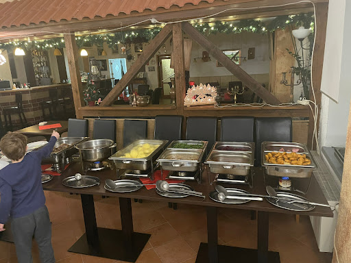 Familienbüfett zwischen Weihnachten & Neujahr, ca. 30 Leute, TOP Empfehlung! Hier stimmt das Preis-Leistungsverhältnis. Was das Wichtigste ist: es schmeckt ausgezeichnet, ein gutbürgerliches Thüringer Menü das satt macht! Hirsch, Entenkeule, Schweinemedaillon im Speckmantel, Geflügelnuggets, Klöße, Kartoffelecken, Pommes, Prinzessbohnen, Rotkohl, Salat, leckeres Eis als Nachtisch für Groß & Klein. Ein Gedicht waren auch die reichlichen, schmackhaften Enten- & Bratensoßen, sowie die aromatische Pilzrahmsoße. Mir läuft jetzt noch das Wasser im Mund zusammen, wenn ich daran zurückdenke.