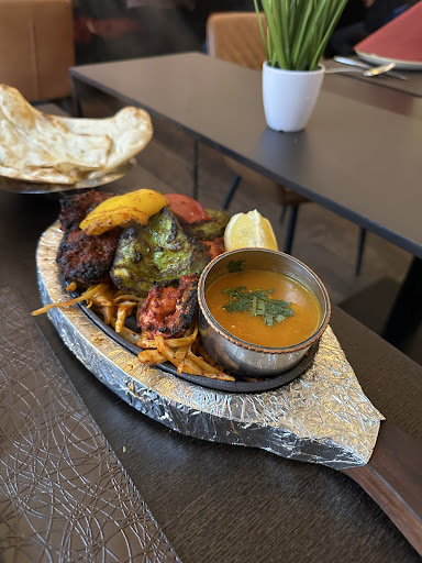 Read moreRestaurant sieht gut aus, Mitarbeiter sind freundlich, jedoch das Essen für den Preis, unvorstellbar. bei solchen Preisen habe ich normalerweise bei einem guten Inder einen kleinen Snack am Anfang z.B. Linsenbrot und dazu 2-3 Soßen bekommen und zum Abschluss noch ein kleines Dessert oder ähnliches aufs Haus bekommen ( wird natürlich auch mit Trinkgeld belohnt). Fleischportion ist den Preis angemessen, Reis hat auch gepasst, jedoch die Qualität war eine Katastrophe. Die Fleischstücke sind große Stücke gewesen, wovon ich absolut kein Fan bin, da es dazu tendieren kann, dass da was eklig schmeckendes drin ist. Und genau das war der Fall: Ich hatte 2 Fleischstücke gehabt( Hühnerbrustfleisch), wo dann eine Stelle war, die etwas bissfester war und vielleicht kennt das der ein oder andere: es hat so einen ekelhaften intensiven hühnergeschmack gehabt. Normalerweise wird sowas rausgeschnitten und darauf geachtet, wenn die Stücke aber so groß sind, übersieht man das eher. Da habe ich kurz einen Brechreiz davon bekommen. Mango Lassi für den Preis mir da ein 0,2 Glas hinzustellen war frech und der war auch nicht schön Cremig, sondern flüssig wie ein Saft. Cheese Naan kann man vergessen, der Käse ist wie Hüttenkäse, so stückig. Der Normale Naan war schon fast so knusprig wie Chips und nicht wie Brot hätte sein sollen. Die beigelegte Soße war eher flüssig und schwach vom Geschmack und auch viel zu wenig Soße, wurde jedoch nachdem ich darum gebeten habe verbessert und mehr gebracht. Also für 20,50€ das abzuliefern naja. Ich bin echt ein Fan von der indischen Küche und habe vergleichsweise viele indische Restaurants ausgetestet, der gehört vom Geschmack nicht zu der Top 10.