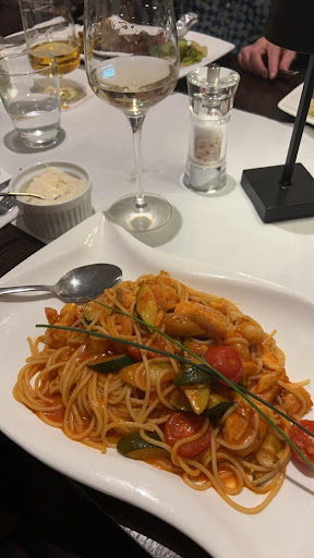 Read moreNiemals wieder! Das Essen ist für die Qualität vollkommen überteuert. Wir hatten beide eine Tomatensuppe als Vorspeise, dann Gorgonzola Nudeln und Rumpsteak und einen Nachtisch. Das Essen wirkte wie fertig eingekauft/nicht selbst gemacht. Das Gemüse war Tiefkühlkost, die Nudeln in Gorgonzolasoße wirkten lieblos und nicht sehr einladend. Zudem war in dem vegetarischen Gericht ein Stück Schinken. Wir haben die Bedienung darauf angesprochen, er wollte in der Küche nachfragen. Es kam nichts mehr dazu. Keine Entschuldigung, einfach gar nichts. Danach kam nur noch eine andere Bedienung zu uns. Das Rumsteakt war ok, aber der gewünschte Garpunkt (richtig gut durch) auch nach dem Nachbessern nicht erreicht, es war immer noch leicht rosa. Für den stolzen Preis sollte hier eine andere Qualität geboten werden. Der Nachtisch (Sizilianisches Eis mit Kandidaten Früchten) war nicht selbst gemacht, sondern ein Fertigprodukt und schmeckte chemisch. Auch dafür viel zu teuer. Mitten beim Essen auf der überdachten Terasse wurde das Dach hochgefahren, alle Leute guckten verdutzt, da es deutlich kühler so wurde (Mitte Mai). Fast so als wollte man die Gäste so langsam nach Hause bitten. Die Wartezeiten bis mal jemand an den Tisch kam oder bis das Essen kam waren außerdem viel zu lang. Wir kommen nie wieder. Für uns der schlechteste Italiener...