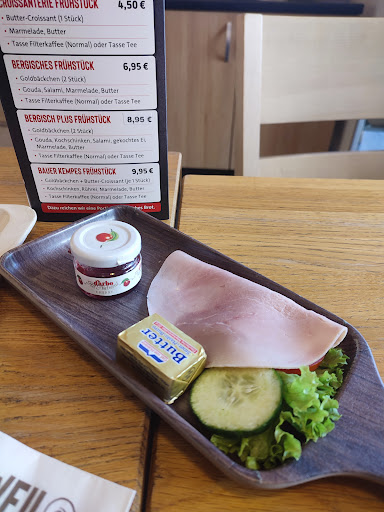 Read moreHeute habe ich das Bauer Kempes Frühstück für 9,95€ probiert. Man bekommt zu einem Brötchen, einem Croissant und einer Scheibe, angeblich ofenfrischen Brot, ein Stückchen Butter, ein Gläschen Marmelade und "EINE" Scheibe Kochschinken. Ich bin ja nicht verschwenderisch, aber ich weiß beim besten Willen nicht, wie das bisschen Belag für so viel Backware reichen soll. Zusätzlich gab es ein Schüsselchen Rührei und eine Tasse Tee oder Kaffee. Der Kochschinken wurde auf einem kleinen Tablet mit Salatgarnitur serviert. Leider waren sowohl die Gurken- als auch die Tomatenscheibe schon mehr als eingetrocknet. Salz gab es nur auf Nachfrage, allerdings bereits gemischt mit Pfeffer, ausgehändigt auf einem kleinen Tellerchen. Geschmacklich war es okay, aber nicht überragend. Allerdings habe ich das Brot nicht probiert, da es nicht wie angegeben ofenfrisch, sondern alt, trocken und sehr ledrig war. Es wurde zuvor auch aus einer Plastiktüte entnommen. Mein Fazit, für 10€ kann man wo anders besser und vielfältiger frühstücken. Deshalb empfehle ich dieses...
