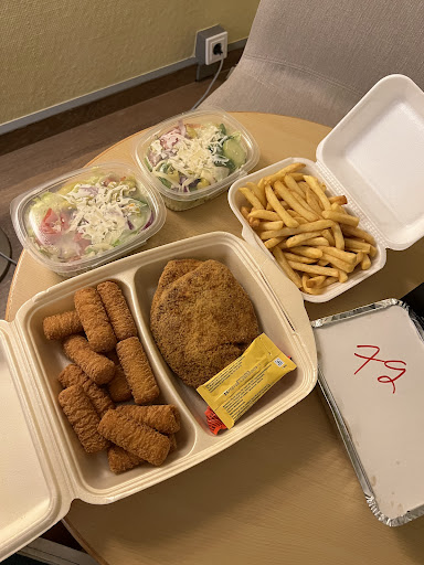 We ordered paniertes schnitzel with croquets and zigeunerschnitzel (we were not given any option to choose the side from the app but fries were provided with it)- both were great and we loved it! The salad was also good too!