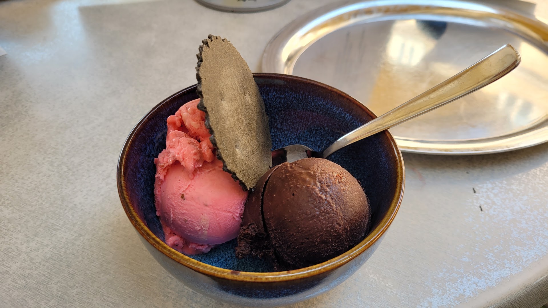 Read moreDas Eis schmeckt ausgezeichnet, hier findet jeder was :) Himbeer-Rosmarin und Bitterschokolade sind sehr lecker.