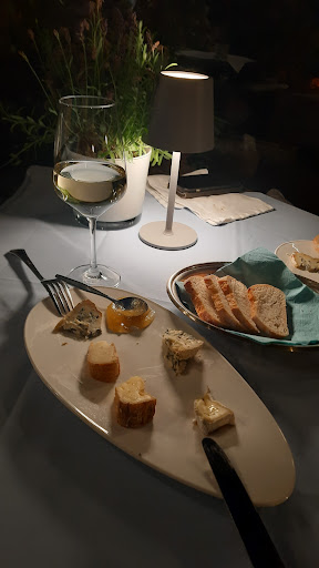 Unser erster Gang wurde serviert: Wachtel, Gänseleber, Zwetschge, Sellerie, Brioche. Geschmacklich sehr sehr fein, jedoch war das Fleisch leider etwas kalt (stand vermutlich zu lange am Pass, ähnlich wie die Suppe später) das war wirklich etwas schade, gerade bei der Leber.... Aber gut. Im 2. Gang gab es eine klare Tomatenconsommé, hausgemachter Ravioli mit Gemüse. Diese Speise bestand aus 2 Teilen: zum einen ein Suppenteller mit Ravioli, Gemüse und Tomaten Ragout und zusätzlich wurde die warme klare Brühe seperat angegossen. Wunderbar fruchtig, süß-säuerlich, kräftig aber leider auch zu kalt für eine Suppe. Geschmacklich dennoch TOP. Service auch hier immer sehr bemüht und aufmerksam auch wenn wirklich sehr viel los war an diesem Abend.