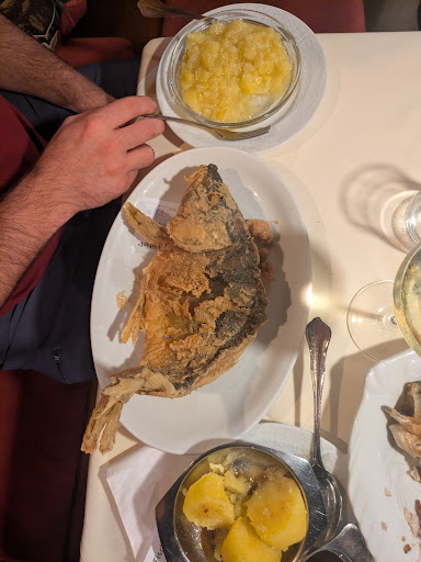 Read moreMy family as well has been eating carp here for as long as I can remember (50 something years…) We come a couple of timers each season, also for celebrations, and we love it: Delicious food, super fresh fish (the slaughterhouse right outside..), home-made salads, carved chandeliers from another era… numerous details we love. For non-fish lovers there is Schnitzel and also a vegetarian option. Family run for many generations! Hopefully to...