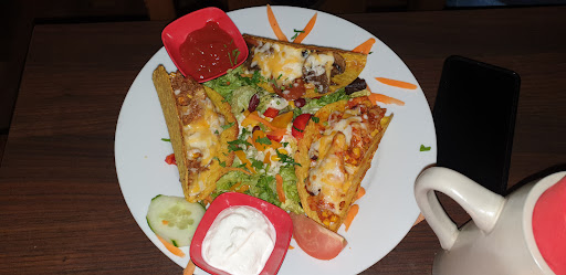 Lunch offer highly recommended: price is relatively low (e.g. in 2022, 8.50 Euro for a burger with fries). Portions are big, food is fresh and tasty. Waiting time was rather short. Burger buns could be different. It was extremely difficult to eat a burger with hands, since it was falling apart. Our soda was extremely sweet and without sparkling part. Was served with some ice. I missed some Mexican offer in a lunch Menü.