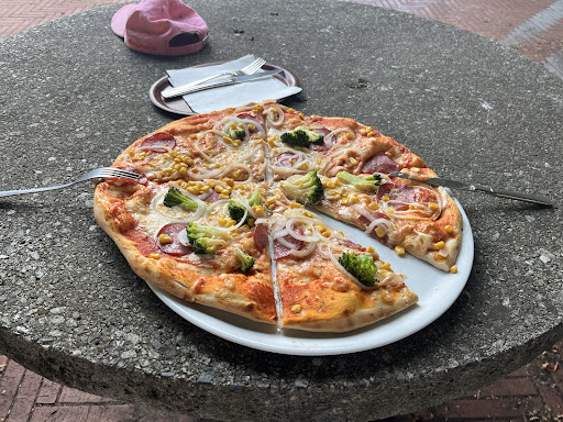 Read moreWir haben Pizza Diavolo bestellt nach 10 min kam sie, ind der Wartezeit sind wir auf Jesus getroffen er erzählte er sei 400 Jahre alt und hat 2 Ausbildungen, er hat eine Canabis Zigarette geraucht und er hat sehr dolle gestunken. Als wir reingehen wollten um zu fragen wie lange es dauert hat Noradins Vater gesagt mit der Stimme von Wlater Frosch,, bis sie fertig is haha‘‘. Wir haben noch gewartet dann kam sie 6 Euro bezahlt für eine kleine es waren insgesamt 4 Stücke. Die ganze Pizza war bedeckt mit Salat aus dem Garten von Montes Oma. Joa haben es ins Gebüsch zurück geworfen und Pizza war ganz Okö. Auf highness schmeckt es glaube ich besser. Ich gebe 2 Sterne da es Noradins Vater war. Schade das er uns kein Baba Gras...