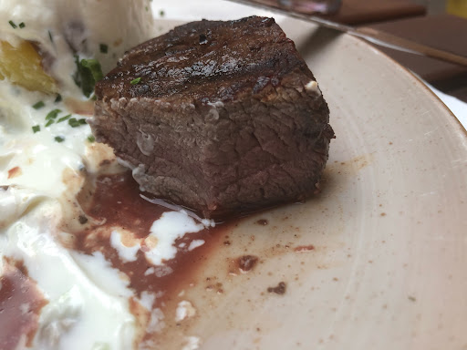 Zeitpunkt des Besuchs: Sonntag, 15.5. gegen 18:30 Uhr. Ich wĂŒnschte, ich könnte mehr Sterne hier lassen. Ich war das erste Mal dort; wir haben den Geburtstag meines Freundes gefeiert. Sowohl mein Freund als auch ich sind Steakliebhaber und sind bereit, auch mal mehr fĂŒr ein gutes Steak zu bezahlen. Deshalb werde ich die Preise hier nicht als zu hoch einstufen o.Ă€. (Dennoch möchte ich an dieser Stelle anfĂŒgen, dass es sinnvoll wĂ€re, wenn man schon vorab auf der Speisekarte die Preise einsehen kann. Momentan ist da nur eine Speisekarte ohne Preise im Internet, erst vor Ort gibt es die mit Preisen). Als wir dort ankamen, hat es etwas gebraucht, bis wir bestellen konnten, aber das ging. Insgesamt haben die GetrĂ€nke 15 Minuten und das Essen 1 Stunde gebraucht, bis es unseren Tisch erreicht hatte. Auf Nachfrage zwischendurch, warum das Essen denn so lange dauern wĂŒrde, hieĂ es ,wir hĂ€tten âzu einem ungĂŒnstigen Zeitpunkt bestelltâ, was auch immer das heiĂen soll. Auch habe ich ein Knoblauchbrot zusammen mit meinem Steak bestellt, es jedoch als Vorspeise erhalten, die wiederum 20 Minuten vor dem Hauptgang kam, weswegen das Brot kalt war, als das Steak kam. Aber auch das waren wir bereit zu verzeihen, wĂ€re das Steak sehr gut gewesen. Leider hatte jedoch bei keinem der vier Steaks an unserem Tisch der bestellte Grad gepasst: wir haben alle Medium bestellt und alle irgendetwas zwischen Medium Well und Well Done erhalten. Bei dem Preis, der Wartezeit und einem Restaurant, das sich durch Steaks auszeichnet, haben wir mehr erwartet. Dennoch konnte man das Steak essen (gute QualitĂ€t an sich!), die KrĂ€uterbutter war sehr gut (!!), die Kartoffel war okay. Gerne hĂ€tten wir diese Kritik bereits im Restaurant geĂ€uĂert, leider wurde jedoch wĂ€hrend unseres gesamten Aufenthalts kein einziges Mal nachgefragt, ob alles passt oder ob irgendetwas fehlt (obwohl die Bedienungen wirklich sehr oft an uns vorbeigelaufen sind). Auch bei der Bezahlung wurde nicht gefragt. Normalerweise ist diese Frage gang und gĂ€be. Insgesamt sind wir schon enttĂ€uscht und werden wohl zukĂŒnftig davon absehen, das Restaurant noch einmal aufzusuchen. Wir sind dennoch in der Hoffnung, dass es sich schlichtweg um einen schlechten Tag handelte, da die Mutter meines Freundes bereits schon einmal dort war und nur Gutes zu berichten hatte.