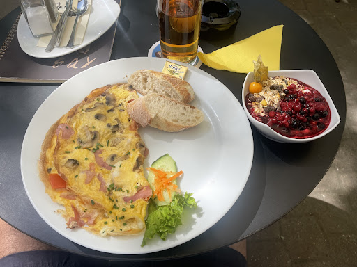 I went to Sax for breakfast this morning and I’ll be going there every day of my stay in Erlangen now due to the quick and friendly service as well as the extensive breakfast menu. I had a mushroom, ham, cheese and tomato (I asked for the cheese and tomato to be added and it was no problem) omelette, followed by their natural yoghurt with müsli and fruits of the forest. Both the omelette and the yoghurt were delicious! I highly recommend Sax for breakfast, lunch or dinner and I’ll be going back there tomorrow and...