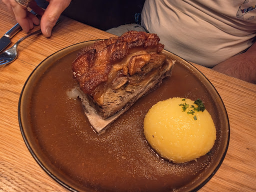 Schäuferla: leider deutlich abweichend. Das Fleisch war trocken und ging schon fast schwer zum Schlucken. Es war zwar reichlich Soße dabei, diese war aber nahezu geschmacklos und kommt an eine Spezerei oder die Hüttn in Nürnberg leider nicht ansatzweise ran. Es empfiehlt sich eine würzige Soße bei der der Biergeschmack durchkommt