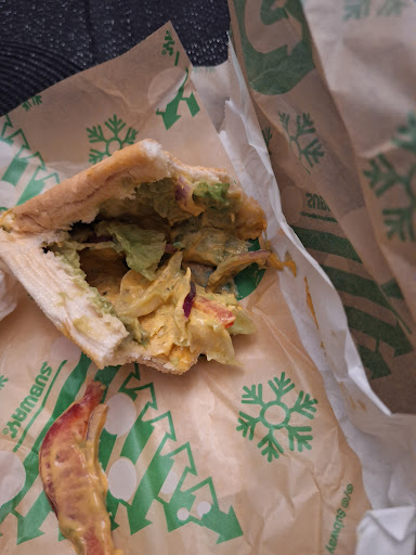Zunächst war erst mal 5 Minuten lang kein Mitarbeiter zu sehen. Grade an einem Autohof, wo man "mal eben schnell" anhält, nicht sonderlich cool. Beim Blick auf die Preise fällt direkt auf, dass es hier weitaus teurer ist als in den umliegenden Subways - ok, Autohof. Meinetwegen. Dennoch etwas ärgerlich. Letztlich kommt ein nicht direkt motiviert wirkender Mitarbeiter. Gebe laut und deutlich meine Bestellung für das Spicy Vegan Patty auf, es folgt ein ratloser Blick auf die Tafel (dort ist es angeboten), dann ein "ähh das da?", ja. danke. Verstanden hab ich ihn auch kaum, der Laden ist laut, der Mitarbeiter traute sich kaum, die Stimme zu benutzen, Flüsterton war ihm wohl lieber. Das Brot schneidet er schon recht langsam und auch deutlich ungleich große Hälften. Beim Belegen hätte ich ihm in der Zeit die Schuhe besohlen können. Das hab ich schon weitaus schneller und besser gesehen (ok, der Käse war sehr aneinander ge/verklebt, aber der Rest...). Werden die Mitarbeiter hier einfach nicht geschult? Es wirkte hier einfach sehr lustlos, langsam und unkoordiniert.
