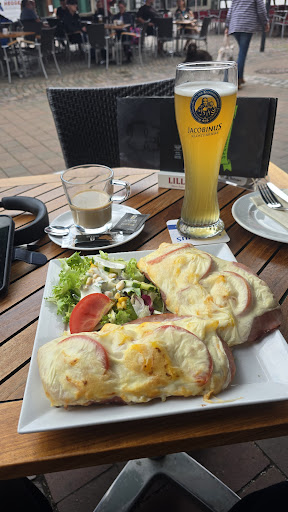Read moreDas Hemingway liegt sehr günstig gelegen zentral und bietet Plätze für viele Gäste. Draußen wie drinnen schöne Plätze. Draußen konnten die Plätze etwas auseinander gestellt werden. Ein wenig hängt man sich da auf der Pelle. Gerade wenn der Nachbartisch raucht stört das schon. Preislich völlig ok. Man bekommt auf freundliche Nachfrage auch mal dies und das dazu wenn es zu wenig war. Die Bedienung ist jung und das merkt man. Kein ausgebildetes Personal. Der Fokus liegt auf nicht gerade den Dingen die für guten Service wichtig sind. Aber sie bemühen sich. Studenten und Schülerinnen sind eben nicht ausgebildet. Es schmeckt. Die kleinen Küche entlässt viele gut geschmückte Leckerbissen. Man kann alle Stunde das Glockenspiel genießen.