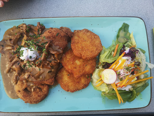 Ein Besuch in diesem Restaurant ist absolut empfehlenswert. Das Sonntagsmenü startete mit einer kräftigen Fleischbrühe mit Eierstich, Gemüse und Fleischklößchen. Wir hatten uns für das Hähnchenschnitzel aus der Hähnchenbrust mit frischen Pfifferlingen, Rahmsoße, Kartoffelrösti und Salat entschieden. Absolut lecker. Das Fleisch war kross gebacken, dennoch saftig. Die Vignigrette des Salates und die Rahmsoße waren köstlich. Der Salat super frisch und abwechslungsreich mit Blattsalat, Kürbisstreifen, Möhren, Radieschen, Paprika, Rot- und Weißkohlsalat, Sprossen, und Kräuterdip. Generell alles top Qualität und frisch zubereitet! Abschließend gab es ein leckeres Desert. Eine Schmandcreme mit Himbeersoße. Wir waren alle begeistert! Zudem hatten wir eine sehr nette und sympathische Bedienung. Vielen Dank! Wir kommen...