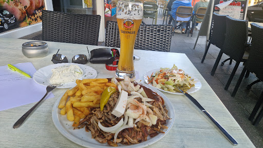 Zunächst das erträgliche : Die Portionen sind sehr überschaubar und relativ geschmacklos. Eine große Portion Pommes passt locker auf eine Handfläche. Das Gyros komplett füllte nicht annähernd den Teller. Aber wir hatten Hunger und es war genießbar.