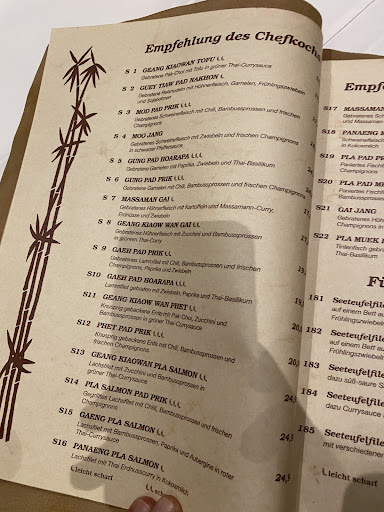 Read moreThe atmosphere is fairly nice. We both ordered Jasmine Tea and Tom Kha soup for a light lunch. The base of the soup is coconut milk, of course. While the soup was flavorful and had a nice amount of meat and mushrooms, it was EXTREMELY sweet. Like dessert. Very off putting. My guess is that they used sweetened coconut milk. I would have brought it to their attention, but we had a pending appointment and needed to leave. Oh, and I ran into a "friend" in the bathroom! 😳 After identifying the German translation for "crawfish" online, I brought it to the owner's attention, and he acted like it...