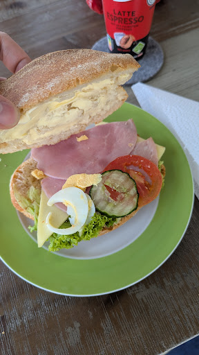 Read moreSo, da ich jetzt endlich daheim bin und diese Rezension schreiben kann, muss ich sagen ich finde sowohl die Hygiene, als auch die Freundlichkeit schrecklich. Die Mitarbeiter verhalten sich als würden sie lieber den Kunden beleidigen, kein Lächeln, freche Antworten und als ich mal beim schmieren genauer geschaut habe beim vorbeisehen, habe ich auch erkannt dass alle brötchen mit einem Brotmesser aufgemacht wurden, welches Reste von anderen Sachen kleben hatte (definitiv keine Brotkrümel), zudem liegen Backwaren direkt an der verschmierten Glasplatte, Schilder liegen auf anderen.. ganz großes Mikroben Chaos... Abseits davon sind die Preise auch utopisch verglichen zu anderen Bäckereien und der Geschmack überzeugt auch nicht. Großer Daumen runter für mich......