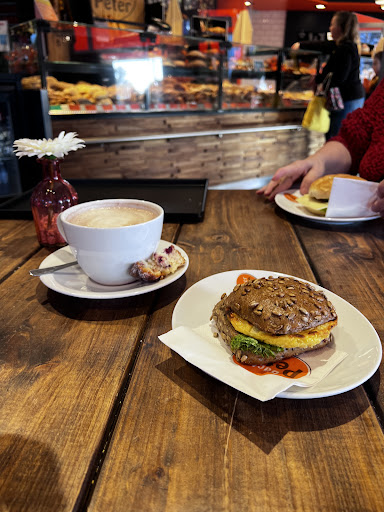 Tolle Filiale von Bäcker Peter! Hier gibt es eine große Theke mit allem, was das Herz begehrt. Snacks Herzhaft und süß, Teilchen, Gebäck, Kuchen und natürlich belegte Brötchen.