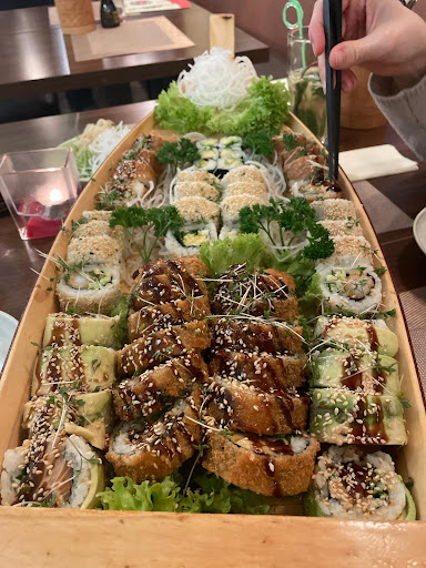Mit Abstand das aller beste Sushi, was ich je gegessen habe. Immer frisch und toll zubereitet! Sieht sowohl vor Ort, als auch zum Mitnehmen immer süß zubereitet aus. Preis absolut in Ordnung, denn das Essen ist Qualitativ sehr hochwertig! Auch die Curry und Nudel Gerichte sind unfassbar lecker! Service meistens super aber mit Ausnahme von 1 - 2 Damen, kommt einfach drauf an wen man hat, aber das ist ja fast überall so. Bestellungen zum Abholen werden schon mal gefühlt "vergessen" und erst dann zubereitet, wenn man zum Abholzeitpunkt eintrifft. Lokalität vor Ort für Lunch super (!!!) für Dinner nicht groß genug und auch nicht sonderlich gemütlich und meist auch etwas kühl. Alles in allem jedoch wirklich einfach unfassbar gutes Essen und wirlkich immer wieder...