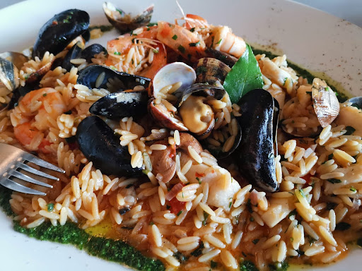 -the waiters were wearing their masks under the nose. -the table we were seated at was dirty. -the waiter seemed in a hurry like he just wanted us to finish already. the tapas with 6 portions : prawns - a good amount of spice but they were not clean- the black part(excretory system of the animal was not taken out), beef carpaccio- no taste, no spices, tzatziki - good, strong flavor, tuna tartar - no flavor at all, no acidity to cook the raw tuna, grilled baby calamari - nicely cooked, manouri with beetroot - the pesto had no flavor, no salt. Good idea but no flavor at all. main dishes : risotto with huge prawns and fish - aka the biggest disappointment. It cost 40 euro and had around 80g-100g risotto - which was no risotto at all. It was a rice stew like the ones my grandma used to make me but she would use salt and pepper. No taste at all. The big prawns was just half of a prawn with some bisque that was overly salted. Way way overly salted. The other fish was also drowned in salt. I must say I ate it because I didn't eat anything before as I was overly excited to try this restaurant. Kritharoto- a Greek pasta shaped like rice that should have the same coinsistancy as a risotto but was far from it. It was with sea fruits - again prawns that were not cleaned. Very salty. The sea fruit was not cleaned - we found sand in the plate.