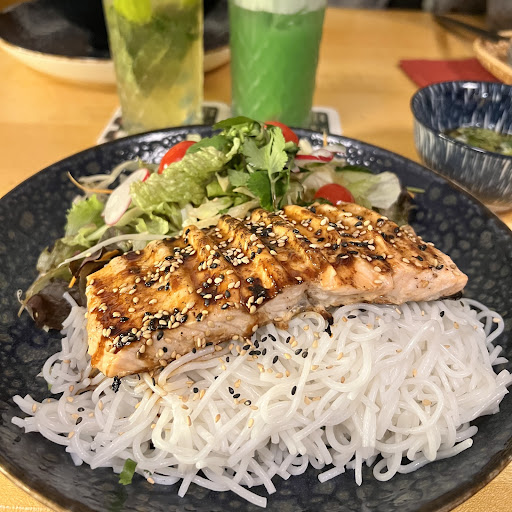 Read moreThis address is used to be a “beer garten” only few years back. But now they serve both great beers and delicious Asian food. I find it interesting and great place to come over and over. They also have wonderful garden on the back where you can enjoy the atmosphere (at this time of writing they are in the progress of renovating so that you might not have accessed). If you are the fan, or even new to, Asian food, especially Vietnamese food you must go there. In my pictures are rice noodles and grilled salmon. I strongly recommend “Pho” which I see that it is really better than the other restaurants in Essen. Sadly I am too enjoying the food and does not take the pictures The price is good from my point of view. But plus the garden then it would...