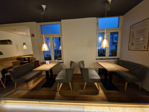 Read moreOptisch top Service Flop. Es tut mir auch wirklich leid nur 2 Sterne zu geben aber der Service war wirklich schlecht. Das Personal was eigentlich nett aber wir haben Kaffe bestellt und uns wurde gesagt dass wir uns schonmal setzen sollen. Wir sind davon ausgegangen dass uns der Kaffe gebracht wird. Nach ca 10 min sind wir wieder zur Theke gelaufen und haben nachgefragt. Dort wurde uns gesagt es sei Selbstbedingug was ja auch okay ist. (Hätte nur gesagt werden sollen) Der erste Kaffe stand schon fertig unter der Maschine war aber inzwischen schon nicht mehr so warm, da das Personal mit den anderen beiden Kaffees gewartet hatte bis bezahlt wurde. Was ist das denn für eine komische Art. Also entweder mache ich erst alles wenn bezahlt wurde oder ich bezahle alles im Nachhinein. Naja also ein Kaffe schon halb kalt und auf die anderen musste noch gewartet werden. Beim warten wurden von irgendeinem internen boten einfach noch lose Avocados über die Theke gereicht die er scheinbar gerade bei Edeka eingekauft hatte. Ist ja vom Prinzip her okay aber Man muss ja nicht jede Avocado einzeln über die Theke reichen wenn Kundschaft da ist. Dann geht man kurz selbst hinter die Theke und legt die dahin.