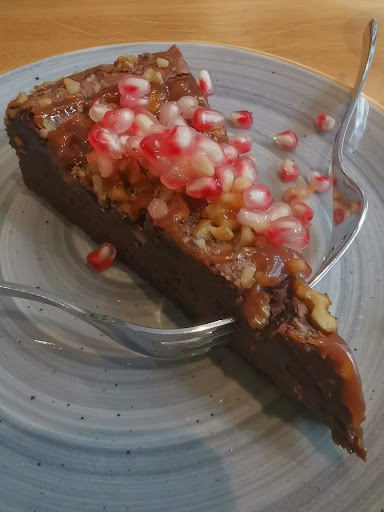 Abzug gibt es für den Service und die Sauberkeit. Zur Sauberkeit : Wir haben eine Speisekarte erhalten, die bereits abgegriffen und eklig am Rücken aussah. So geringe Kostenträger sollten ausgetauscht werden. Das finde ich absolut unhygienisch und passt einfach nicht zu euch. Euer Laden wirkt und ist sauber, warum dann nicht eure Speisekarten? Da die Karten aus Kartonmaterial sind, kann man diese auch nicht einfach mit einem Lappen sauber wischen, siehe Foto. Der Service war etwas schläfrig und unaufmerksam, da habe ich tatsächlich mehr erwartet, da neben uns (2 Personen) jeweils insgesamt vier weitere Personen mit uns im Lokal saßen und im Außenbereich noch einmal zwei. Die Bestellung wurde prompt und schnell aufgenommen und serviert, als wir uns platziert hatten. Wir saßen ca. 2.5 Stunden vor Ort und hatten eine Rechnung von 65 Euro. Mein bestellter Joghurt mit Früchten, welcher leer war, stand bis zum Ende an unserem Tisch. Lautstark und mit viel Aufmerksamkeit wurde mit einem unbelehrbaren, jaulenden, bellenden Hund gesprochen, scheinbar der Hund vom Café Besitzer, war etwas nervend. Hunde scheinen generell erlaubt zu sein, finde ich super. Haben drei Stück während unserer Zeit vor Ort gesehen. Ich kann den Laden trotzdem empfehlen, werden noch einmal zu einer anderen Uhrzeit vor Ort sein, um einen anderen Eindruck...