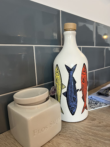 Ambiente Das Restaurant ist stilvoll maritim gestaltet, mit vielen liebevollen Details, die sich sogar bis in die Toiletten ziehen. Dort gibt es kleine Aufmerksamkeiten wie Deo und Handcreme bei den Herren sowie Haarspray und Pflegeartikel bei den Damen. Wir saßen am einzigen Hochtisch, zunächst skeptisch, aber dann sehr positiv überrascht, angenehm abseits, mit schönem Blick zur Bar und ins Restaurant, sehr empfehlenswert.