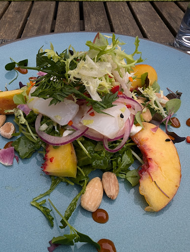 Unsere Auswahl: • Vorspeise: Thunfisch-Tatar und Lachs, wunderschön angerichtet, begleitet von einer feinen Creme und frischem Brötchen, sehr lecker und absolut stimmig. • Hauptgänge: • St. Petersfisch in einem aromatisch abgeschmeckten Dashi-Sud, filigran, aber intensiv im Geschmack. • Gegrillte Riesengarnelen mit doppelt frittierten Pommes, außen knusprig, innen weich, dazu drei passender Dips. • Doradenfilet mit Pilzravioli, wunderbar harmonisch und kreativ kombiniert