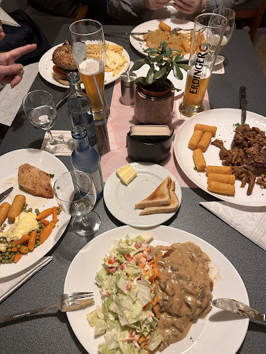 Read moreEine Zeitreise zurück in eine Epoche, in der man sein Essen noch nicht fotografiert hat, weil die Entwicklung des 24er Films eine Woche gedauert hätte und die Leute vom Amtsblatt nicht geglaubt hätten, daß man ein Bild seines Essens inserieren will. Schnitzel mit Pilzen und Pommes wie früher, schmackhaft und reichlich, in einem Lokal, das auch aussieht wie früher. Familiär, freundlich, gutbürgerliches Essen. Gen Z wird sich nicht vorstellen können, wie sich das anfühlt.