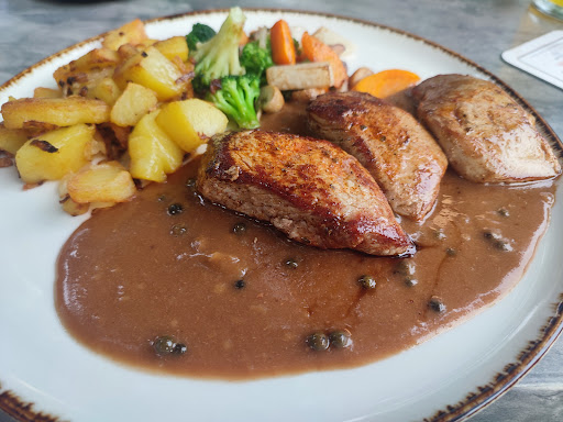 Read moreDas Essen war gut,preislich angemessen,etwas gehobener Bereich,aber nicht zu teuer,angemessenes Preis Leistungsverhältnis! An dem Tag saß ich im Biergarten,und ein paar Idioten meinten,obwohl ich draußen und mindestens 10 Meter entfernt war,es störe sie,wenn ich meine Kapsel mit medizinischem Cannabis dampfe! Cannabis ist eine Medizin,kein Gift wie Nikotin, Nikotinraucher werden geduldet,obwohl ich als als kranker Mensch zb kein Nikotin vertrage,sage ich nichts,weil es an der freien Luft ist, eigentlich müsste man gerade dieses Nervengift aus einem Lokal,bzw Biergarten fern halten,und nicht Kunden das dampfen verbieten von Heilkräutern,wenn trotzdem Gifte wie Nikotin erlaubt werden,und das Gift Alkohol getrunken und verkauft wird,vor Kindern,was scheinbar völlig normal ist,trotzdem beides tödliche Nervengifte sind,an denen jährlich zigtausende Menschen sterben! Wie gesagt,das Essen war gut,aber ich werde mir dieses Erlebnis merken,und ob ich dort nochmals speise,werde ich sehen,für die unangenehme Behandlung,wenn auch wegen einer angeblichen Beschwerde von weit entfernt sitzenden dumm grinsenden Rauchern,meines Erachtens nach,gibt leider 3 Sterne Abzug! Qualität des Essens und Preis Leistung waren gut und angemessen,die Entschuldigung des Kellners fand ich wenn wirklich ehrlich gemeint auch gut,also dafür 5 Sterne und die Freundlichkeit! War schon doof,aufstehen zu müssen,und vor das Lokal dann gehen zu müssen,wie ein Krimineller,nur um meine Medizin zu dampfen,vor allem war ich da 40 cm weiter rechts hinterm Zaun,als wo ich eigentlich saß! Da ist viel Spiel nach oben,andere Gaststätten reagieren da anders,ich fühlte mich unwohl,trotz der Entschuldigung und des guten Essens für ca 60€ mit...