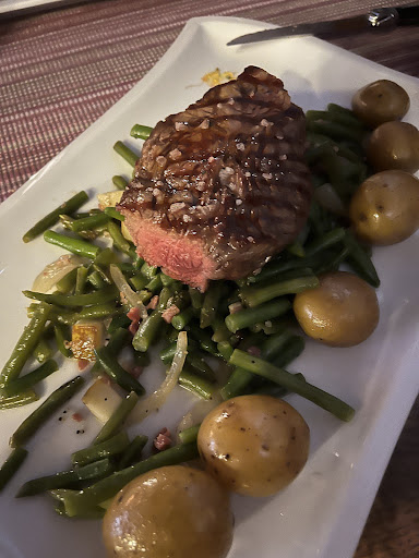 Absolutely amazing time at this restaurant. I could not fault anything. Great location near public transport (30 seconds walk away) made it easy to enjoy the range of drinks on offer. I especially liked the caramel toffee liquer. The goats cheese, walnut and honey starter I had was delicious as the dressing was home made and like nothing i have tasted before. The tomoto soup was also very very good. The bison steak was cooked beautifully and the vegetables were cooked to perfection. The dessert of panna cotta was also very good and it was not overly sweet. It was served with a mixed berry topping which complimented it perfectly. The interior of the restaurant is very quaint and traditional with rustic beams and traditional furniture. The menu is written on 2 blackboards which ensures the freshness of the food (which i could not fault). The service was lovely and friendly and the staff were very welcoming. It was also nice that the man who served us spoke excellent english and did not hesitate to explain some of the dishes. The price and value for money was excellent. We will definitely be...