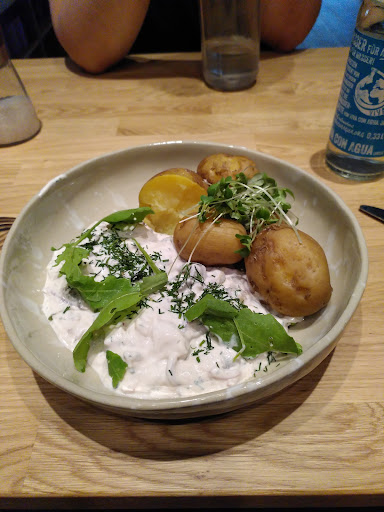 Read moreWe stopped by for a late lunch. Service was quick and polite. We were seated in their shaded outdoor courtyard and had the place to ourselves. We first ordered drinks (a pine flavoured 'limonade') and then the food came out. The menu is fairly select, so we ordered the ricotta ravioli and umami bolognese. The first was scrumptious: three soft ravioli filled with a silken tofu 'ricotta' in a beurre blanc and a warm white bean salad. We demolished it. The umami bolognese was also very tasty, but we were surprised that it was a standalone sauce without a noodle or grain accompaniment. For the portion size, the prices are somewhat on the steep side, but that small kitchen is still putting out...