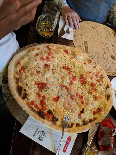 Als die Pizza am Tisch ankam, war diese nur lauwarm. Der Käse hat eine reine Fettablagerung oben gehabt. Wieso dies die zweitschlechteste Pizza in einem Restaurant war, die ich bisher gegessen habe: Das Essen hat keinen Spaß gemacht. Durch den riesigen Umfang und den dafür zu kleinen Teller, musste man ständig die Pizza verrücken, damit man diese schneiden kann. Das schneiden dazu war anstrengend, da das Besteck durch die Bank weg stumpf war. Evtl. 2-3x scharfes Besteck war dabei.
