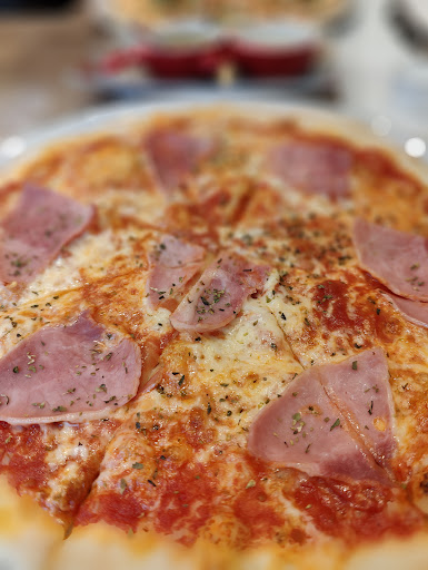 Heute entdeckte ich durch Zufall diese gediegene, wirklich mediterane Pizzeria. Vor dem Eingang sah ich 2 Tischchen, aber ich bevorzugte drinnen zu essen. Erstaunt von der wirklichen Größe dieses Restaurants nahm ich sofort die blitzblank geputzten Holztische wahr, über denen hängende Retrolampen hingen, nun aber mit schwarzen Strängen versehen, an denen verschiedene Glühbirnen mit flackerndem Kerzenlicht hingen.Auf jedem Tisch stand eine mit Sand und leider auffallend unechten Blumen. An der Wand stand ein Sideboard mit 2 echten Kerzen, weissen Kerzen. Die junge Dame namens Sarah begrüßte mich sehr freundlich und brachte mir die Karte. Die Karte macht Appetit auf eine große Auswahl an Pizzen, Salat und Pasta. Ich aß eine Capresepizza, 🍕🍅die einfach nur köstlich war. Dazu reichte sie mir 2 verschiedene Oele, die man auf die Pizza Tropfen konnte. Das kannte ich nicht, aber es hat wunderbar geschmeckt. Ein alter Mann betrat die Pizzeria, die inzwischen gut gefüllt war, mit einem großen Einkaufswagen. Mit klugem Blick nahm Sarah ihn wahr und ließ ihn Pizza🥘 Margherita bestellen. Dann wollte er lieber 2,was sie lächelnd quittierte. Als die Pizzen fertig waren, haderte er, wie er die denn nun in seine Tasche bekommen sollte. Ich musste lachen. Sie sagte ganz cool,da gibt es doch einen Gurt, den legen wir darum, und Sie bringen alles heil heim. Er meinte, wenn das mal gut geht, aber sie sei klug. Da meinte ich, 2 von Aldi haetten einfacher in ihren Einkaufswagen gepasst. Diese ehrliche Freundlichkeit von Sarah hat mir sehr imponiert und gefallen. Die Aufträge, die kamen, telefonisch oder vor Ort wurden ohne Hektik beherzt abgearbeitet. Alle waren zufrieden. Habe wirklich noch nie eine so gute Pizza gegessen und mich selten sofort in einem mir fremden Lokal wohlgefühlt. Mein Kompliment. Dankeschön für die...