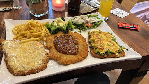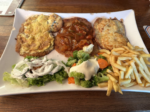 Read moreZwei Empfehlungen folgend sind wir hier eingekehrt. Entgegen der allgemeinen Reservierungsempfehlung haben wir telefonisch nach 45 Minuten für den gleichen Tag (Sonntag) bereits einen Tisch bekommen. Der Biergarten war gepflegt aber minimalistisch, ohne Deko oder Schnickschnack. Die Stühle eher wackelig bei meinem Gewicht. Wir bekamen schnell übersichtliche klar strukturierte Karten und zügig unsere Getränke. Leider wurden wir von 3 oder 4 verschiedenen Mitarbeitern bedient. Der Erste brachte uns Karten und Getränke und nahm die Bestellung mit u.A. Sauce und Majo auf, der Zweite brachte das Essen, bei dem wir bereits an Sauce und Majo erinnerten und der Dritte kramte dann Majonause aus der warmen Hosentasche, prompter Service, aber die Majo lief natürlich vom Teller. Wir bekamen Feuchttücher und Teller zu den Spare Ribs, das war nett. Der vierte motarbeiter war der netteste und wir waren froh das er uns abkassierte und das Trinkgeld bekam. Die Spare Ribs waren auch sehr fleischig, relativ zart und lecker. die Barbecuesauce machte zwar einen selbstgemachten Eindruck, traf aber nur 2 von 3 Geschmäckern, da sie mir insgesamt zu zwiebelig und zu Essig-haltig war, ggf. von Worcestersauce, aber andere Gewürze und vorrangig das Raucharoma fehlte mir leider. Dennoch gute saftige Ribs. ommes ausreichend und knusprig und gut gesalzen, auch die Speckbohnen waren bissfest, aber der Speck wabblig und nicht so gut gewürzt, dazuFertig-Hollandaise. Schade. Schnitzelsaucen insgesamt eher Standard langweilig und leider gibt's es keinen Beilagensalat und wenig Alternativen zu Schwein. Zur Mitnahme der Reste bekommt man gern Styroporboxen ausgehändigt. Parkmöglichkeiten sind eingeschränkt aber wir konnten auf die Strasse ausweichen. Der Biergarten dürfte bis auf die Bereiche mit Kieselsteinen sogar rollstuhlgerecht sein. Da ich den Innenraum und die Waschräume nicht besucht habe, kann ich dazu nichts schreiben. Wer Schweineschnitzel mag ist dort sicher zufrieden. Da wir keine XXL Portionen mögen und die Saucen nichts Besonderes hergaben, würden wir dafür nicht nochmal so weit fahren (15km)....