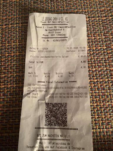 Read moreSelten bin ich so unfreundlich und unaufmerksam bedient worden . Keine Kundenorientierung, kein Blickkontakt und nur unverständliches Genuschel der ungepflegten Verkäuferin! Dazu ein überteuertes „Ficelle“ , welches unliebsam zubereitet war . Die Enttäuschung folgte beim ersten Bissen im Zug . Brot alt und trocken und der Käse angetrocknet und wellig . Hätte ich die Zeit , würde ich die Lebensmittelaufsicht benachrichtigen! Die ganze Filiale wirkt schmuddelig und unaufgeräumt. Es wäre für das Unternehmen ratsam , sich seine Franchise-Partner besser anzusehen und die Lebensmittel-Hygiene stärker zu kontrollieren. Ein Verzehr in dieser Filiale ist reine...