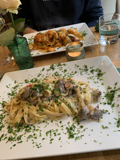 Read moreDas Essen sieht nicht nur auf dem Bilder unfassbar lecker aus, nein es schmeckt auch vorzüglich.🤩 Die Pasta ist einfach geisteskrank lecker. Gleich beim Betreten des Restaurants ist mir die entspannten Atmosphäre aufgefallen. Es spielte leise Musik. Die Tische waren schön hergerichtet. Das Restaurant wunderschön mit einer „grünen“ Wand und alten Bildern dekoriert. Sofort fiel mir auch die kleine Bar am Eingang auf. Nachdem wir zu unserem Platz gebracht wurden, wurden wir direkt gefragt ob wir eine Flasche Wasser haben wollen. Danach wurde uns erklärt, dass in diesem Restaurant sogar die Pasta selber gemacht wird. Zum Essen gab es bei mir vorab Bruchetta. Danach gab es Filetto di Manza mit Tagliatelle. Diese würde zu jedem Zeitpunkt wieder bestellen. Die Portionsgröße, die Qualität des Essen und der Preis stimmen einfach überein.