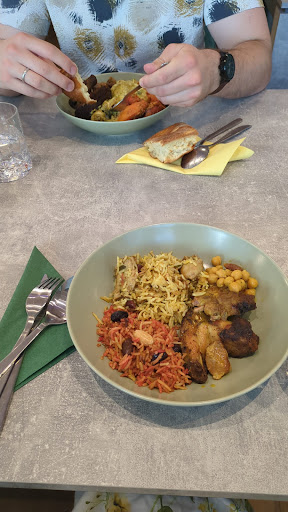 Read moreWir waren letzte Woche Donnerstag das erste Mal bei Mamas Küche. Überraschend fanden wir, dass niemand dort gegessen hat, und wir die einzigen im Restaurant waren, wollten uns davon aber nicht abschrecken lassen. Wir wurden aufrichtig herzlich empfangen und uns wurde das Buffet gezeigt. Verschiedene Hauptspeisen, Beilagen, Salate, Dips und Brote, sowie Süßspeisen, Wasser, Tee und Kaffee haben auf uns gewartet. Zum Glück haben wir in Mamas Küche gegessen, das Essen war wirklich unfassbar lecker. Ich esse kein Fleisch, bin aber dennoch fündig und mehr als satt geworden. Dadurch dass es zu unserem Besuch keinen Betrieb gab, hat man gemerkt, dass die Speisen schon etwas länger lagen und das Brot war auch nicht mehr weich und frisch. Mich stört das persönlich nicht, denn ich bin gegen Verschwendung. Das tat dem Geschmack auch keinen Abbruch. Der Grund warum ich leider einen Stern abziehe, ist, dass die Speisen nicht ausgezeichnet waren bzw es stand nicht dabei was es ist. Daher wusste ich bei manchen Sachen nicht, ob Fleisch drin ist oder nicht, wenn man es nicht offensichtlich gesehen hat und habe evtl. Nicht alles probieren können. Ich hätte es auch unangenehm gefunden, bei jeder Speise nachzufragen. Zwar gab es das ein oder andere Schild, aber das war dann teilweise nicht mehr lesbar oder nicht eindeutig. Die Inneneinrichtung ist angenehm und gemütlich, alles war sauber, einladend. Ich finde das Konzept wirklich toll und wünsche mir, dass das Restaurant sich hält und würde gerne...