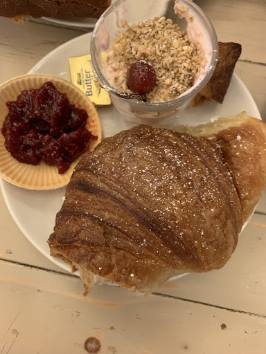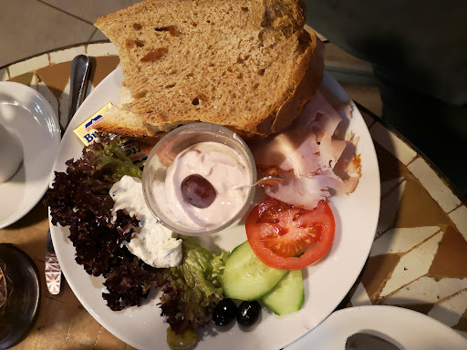 Personal unfreundlich, für Selbstbedienung zu teuer, Qualität gut, Portionen aber zu klein. Die Lokation ist ganz originell und nett eingerichtet. Haben im Internet die Beschreibung gesehen und wollten es unbedingt ausprobieren. Man muss sich sein Frühstück an der Theke zusammenstellen, bezahlen und selbst an den Tisch tragen. Die Preise sind dafür etwas zu teuer. Ich gab trotzdem Trinkgeld in die neben der Kasse stehende Plastikschüssel. Bedankt hat sich aber niemand der Damen an der Theke. Das herzhafte Frühstück beinhaltete 2 dicke Scheiben Brot, Salami, Schinken, Butter und Schmierkäse und kostete € 7.90. Ich hatte das Müsli mit Früchten, das sollte laut Karte eigentlich € 4.90 kosten. Warum dann auf dem Bon noch € 2.00 für eine unbekannte Extrabeilage verlangt wurde, weiß ich auch nicht. Habe es leider erst zu spät bemerkt, um noch zu reklamieren. Der Teller mit dem Müsli war zwar sehr nett dekoriert, aber für € 6.90 möchte ich auch noch satt werden. Das bißchen Joghurt, Obst und die einzelnen, drübergestreuten Haferflocken hätten nicht mal einem Kind ausgereicht. Die "große" Tasse Cappuccino zu € 3.80 war qualitativ gut, aber wenn ich einen großen Cappuccino bestelle, bekomme ich in der Regel auch eine um einiges größere Tasse serviert als hier. Große Tassen sind in den allermeisten Cafés bauchig, hier verjüngt sich die Tasse nach unten, um Kaffee zu sparen. Dafür viel zu teuer. Wir wollten für unseren Hund an der Theke etwas Wasser für den eigenen Napf haben. Die ältere Verkäuferin mit Brille gab uns keines. Als ich sagte, dass man das doch überall bekäme, sagte sie nur patzig, dann sollen wir uns das doch selbst auf der Toilette im Keller holen. Als ich dann auch noch ein paar wenige Fotos von der Theke und dem Café machte, machte mich diese ältere Thekenkraft mit grosser Brille unfreundlich darauf aufmerksam, dass sie es hier nicht mögen, wenn fotografiert wird. Im Nachhinein fällt mir noch ein, dass uns weder beim Kommen noch beim Verlassen des Cafés eine der zahlreichen Thekenkräfte begrüßt oder verabschiedet hat. Die haben es irgendwie nicht mehr nötig. Ich denke, das Preis-Leistungsverhältnis stimmt hier überhaupt nicht und es gibt in der näheren Umgebung genügend andere nette Cafés, wo auch ein ruhiger braver Hund willkommen ist und wo einem nicht irgendwelche Extras, die man nicht hatte, abgerechnet werden. Punkteabzug wegen dem extrem unfreundlichen Verhalten bezüglich unseres Hundes wegen dem Wasser, dem Fotografierverbot und dem zu teuer berechneten Müsli. Deshalb können wir das miamamia leider auch nicht...