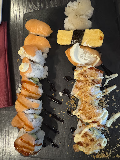 Read moreThe first all you can eat restaurant where a child under 3 years have to pay (6-7€) and the “train” menu is 18+€ but the train table had only couple of rolls moving, so we chose “alla card all you can eat menu” which was 28+€ First we waited 16 minutes for 3 dishes all fried, and springrolls were burnt black so was the rest of the dishes but this one in particular. Afterwards we had to wait 17-18 minutes for 1 portion of fried banana… One peace of Nigri per order, 5 plates per order every 15 minutes (which would be ok if the plates had reasonable amount of pieces) The waitress was unhelpful and unwelcoming at the beginning but at this point she became rude- on my question if the banana is coming she replied: Not my fault, I’m not the one cooking it. We arrived at 12:15 midday and left at 14h with only 3 rounds of orders because we were waiting an eternity for them to arrive in an empty restaurant. The restaurant had 3 other costumers in that moment (so no excuse of having a big order rush) the tablet was very complicated and constantly needed support from the staff, at the end we couldn’t pay with the card and had to pay with cash because the card limit is 40€ and my bill was 39,70€ and the waitress was proud saying: We didn’t charge you for banana, on the all you can eat Manu. Overall bad experience, poor service and too expensive for poor...