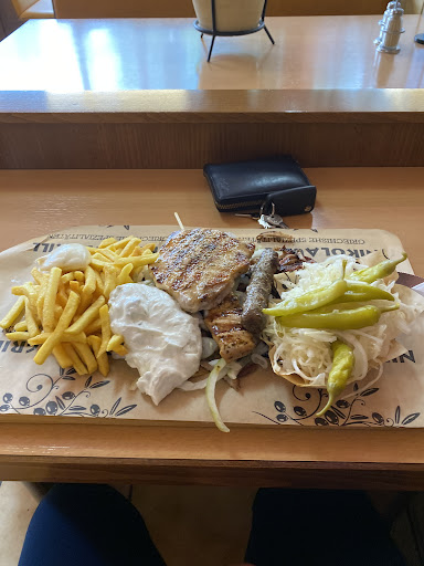 Read moreKann die Rezensionen nicht verstehen! Das schlechteste griechische Essen, was ich je gegessen habe!! Das Fleisch unglaublich trocken, ungenießbar. Haben es dem Hund gegeben und selbst der hat es nicht gegessen. Selbiges mit den Pommes, mir unerklärlich!! Dazu kommt, das die Bestellung ALLE nicht komplett waren und entweder irgendwo etwas fehlte, oder Dinge dabei waren, die man nicht wollte. Zudem werden dort immer noch auf altmodischen kleinen Plastiktellern verpackt, die sich in der Größe nicht verändern, unabhängig davon, ob man zB eine normale Portion Pommes, oder eine doppelte Portion bestellt. Im Übrigen auch nicht im Westlichen optisch in der Menge zu erkennen!!...
