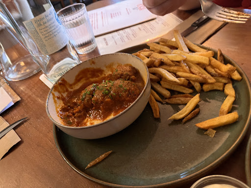 Read moreFangen wir mit dem (fast) einzig Positiven an, dem Ambiente: schöne, gemütliche Einrichtung, teilweise sehr verstaubt, Bank absolut unbequem, wie in den meisten Läden, nach Rücksprache mit dem Service umgesetzt, Sofa und Sessel deutlich bequemer, aber zum Essen aufgrund unterschiedlicher Höhe zwischen Sitzmöbel und Tisch ungeeignet. Boden stellenweise merklich abgenutzt und kommt hoch. Optisch schöne, aber zum Essen eher unpraktische Einrichtung. Zum Kaffeetrinken jedoch gemütlich (Sofa und Sessel). Essen: das eine absolut versalzen, das andere hingegen mehr als laff, optisch leider beides ein Reinfall, wirkte wie hin geklatscht. Dessert optisch definitiv ansprechender, allerdings war in einem mehr als nur ein Haar drin, kann passieren, aber das machte den Gesamteindruck nicht besser. Anfrage bezüglich ein paar Scheiben Apfel zum Dessert, selbstverständlich gegen Aufpreis, wurde unverzüglich vom Service in Erfahrung gebracht, allerdings hätte der Aufschlag bei , laut Service, "2 bis 3 Euro" gelegen. Für drei, vier Scheibchen Apfel? Das ist unverhältnismäßig, demnach dankend abgelehnt. Preise stehen nicht im Verhältnis zu dem was optisch und geschmacklich geboten wird. Der Preis wird mit der hohen Qualität der Produkte gerechtfertigt. Zur Qualität der Produkte kann keine fundierte Beurteilung vorgenommen werden, da die genauen Lieferanten bzw Herstellerquellen nicht bekannt sind bzw uns zumindest nicht bekannt sind. Jedoch sollte gerade dann eine gute Umsetzung/Verarbeitung der hoch qualitativen Produkte gewährleistet sein. Ansonsten hat der Gast eher wenig davon. Service: eine Mischung aus nicht wirklich Bock und latent frech/vorlaut, trotzdem wollen wir hier die Ansätze von Bemühungen nicht komplett vernachlässigen, da die Anfrage mit dem Dessert entgegen genommen wurde und direkt an die Küche weitergeleitet wurde, manch andere lehnen Sonderwünsche grundsätzlich ab. Auf den freundlichen Hinweis mit verständnisvollen Worten auf die Haare im Essen, wurde lediglich mit einem "kann passieren" und lachend "kann ja nicht von euch sein" (ich bin grauhaarig, meine Begleitung hat aufgrund offensichtlicher Krankheit keine Haare mehr) abgetan. Absolut, kann passieren, deshalb haben wir von Anfang an Verständnis geäußert und es sehr freundlich angemerkt, aber es folgte noch nicht einmal eine Entschuldigung daraufhin. Das war leider ziemlich enttäuschend und taktlos. Hinsichtlich Trinkgeld hatten wir durchaus mit uns gehadert, jedoch ist es ja kein Geheimnis, dass es in der Gastro so gut wie nur Mindestlohn gibt und einige auf das Trinkgeld angewiesen sind und zudem sollten auch Ansätze von Bemühungen honoriert werden, deshalb wurden die üblichen 10 % Trinkgeld gegeben. Alles in allem keine sonderlich positive Erfahrung und für uns keinen weiteren Besuch wert und aufgrund dessen haben wir uns dagegen entschieden eine Anfrage für eine private Feierlichkeit zu stellen. Schade. Wir bedanken uns trotzdem für jegliche Bemühungen und dass wir Ihren Laden...