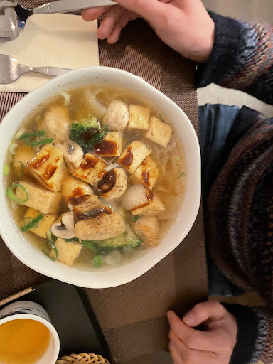 Read moreEin Parkplatz war schnell gefunden. Einen eigenen Parkplatz gibt es nicht. Wohl in einer verlassenen Eckkneipe gelegen, wirkt es von außen eher unscheinbar. Innen ist das Ambiente schlicht, aber angepasst. Mir persönlich sind asiatische Restaurants oft überladen mit kitschiger Deko. Dieses hier nicht. Platz gab es ausreichend. Das Speiseangebot ist übersichtlich, aber durchaus umfangreich genug, um immer was Neues zu testen. Auf Nachfrage, ob alles auf der Karte vegan sei, wurde von der netten Bedienung bestätigt, dass auch die Getränke vegan, also ohne Gelatine etc. seien. Also sehr durchdacht und überzeugend. Da merkt man als Gast, dass die sich wirklich Gedanken machen und aus Überzeugung dieses Restaurant leiten. Zum Getränk gab es keine meist eher unnötige Serviette zum Draufstellen der Flasche, sodass ich davon ausgehe, dass sie wenig Abfall produzieren. Essstäbchen waren ebenfalls hochwertige, Wiederverwendbare. Besteck gibt es auch ;). Das Essen war auf sehr schicken Tellern nett angerichtet. Ich fand die Sommerrollen und Seitan-Spieße sehr lecker! Besonders der Erdnuss-Dip. Das Gemüse war schön knackig und frisch. Schade war nur, dass mein Essen schnell kalt war. Vielleicht helfen hier vorgeheizte Teller. Am Ende haben wir das Restaurant sehr glücklich und gut gesättigt verlassen mit der Intention, auf jeden Fall...