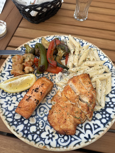 Read moreZuerst zu den positiven Eindrücken: Der Service war sehr nett. Es gab einen recht üppigen Gruß aus der Küche in Form eines Salats. Auch das Ambiente war ansprechend. Zum Essen: Nun ja, es hatte mich schon gewundert, dass die Karte so unglaublich viel bietet: vollwertige asiatische und italienische Gerichte, Burger und Co. Ich hatte eine Pizza Caprese, die mir leider nicht geschmeckt hat. Das lag daran, dass das Basilikum vor dem Backen auf die Pizza gelegt und dann mit Käse überbacken wurde. Da es recht viel Basilikum war, wirkte das Ganze fast wie eine Spinat-Pizza. Teilweise war das Basilikum verbrannt und matschig, was dazu führte, dass die ganze Pizza nur nach Basilikum schmeckte und nicht leicht damit gewürzt war. So habe ich das auch noch nie erlebt, dass das Basilikum vor dem Backen draufgemacht wurde. Deshalb gibt es leider...